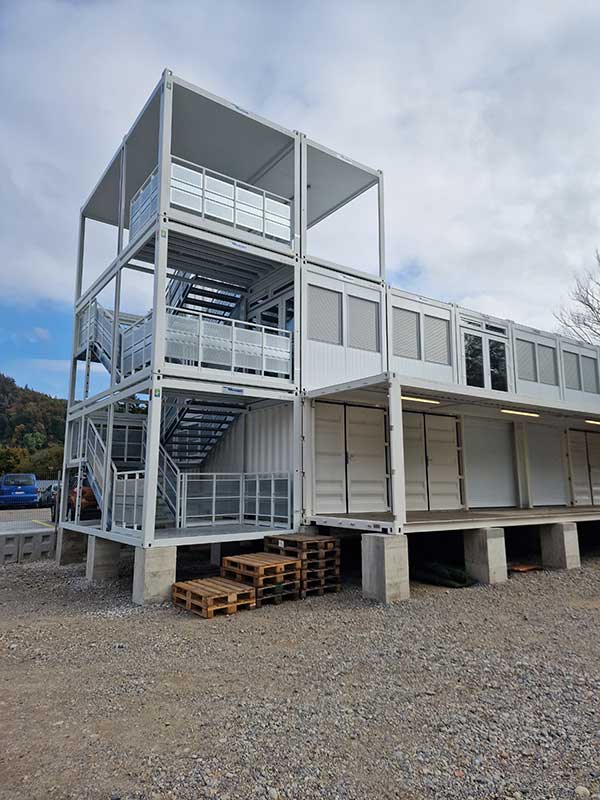 - Fenster und Türen: Es können Fenster und Türen in den Container eingebaut werden, um natürliches Licht und eine zirkulierende Belüftung zu gewähren.
